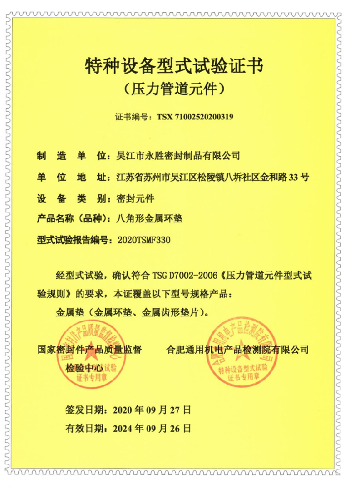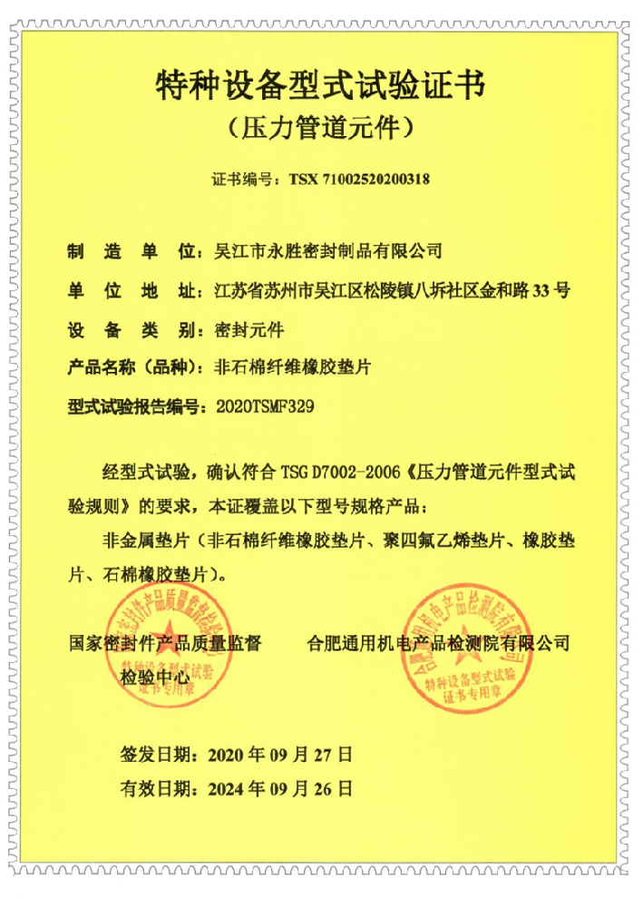 特種設(shè)備形式試驗(yàn)證書